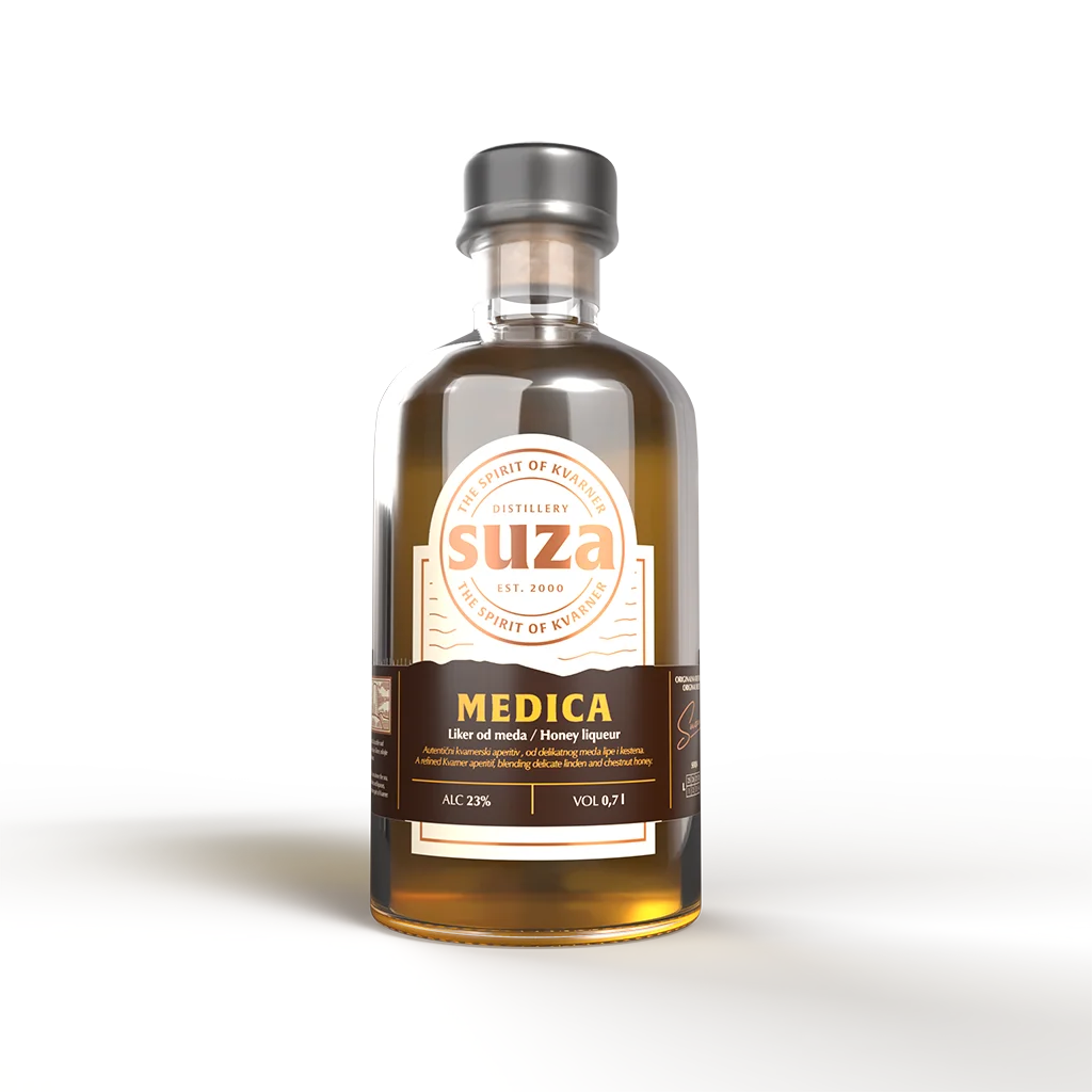 Medica 0,7L je tradicionalni hrvatski liker od meda, inspiriran dugom pčelarskom tradicijom obitelji Suza. Topao, pun i aromatičan, donosi prirodnu slatkoću meda u elegantnoj interpretaciji.