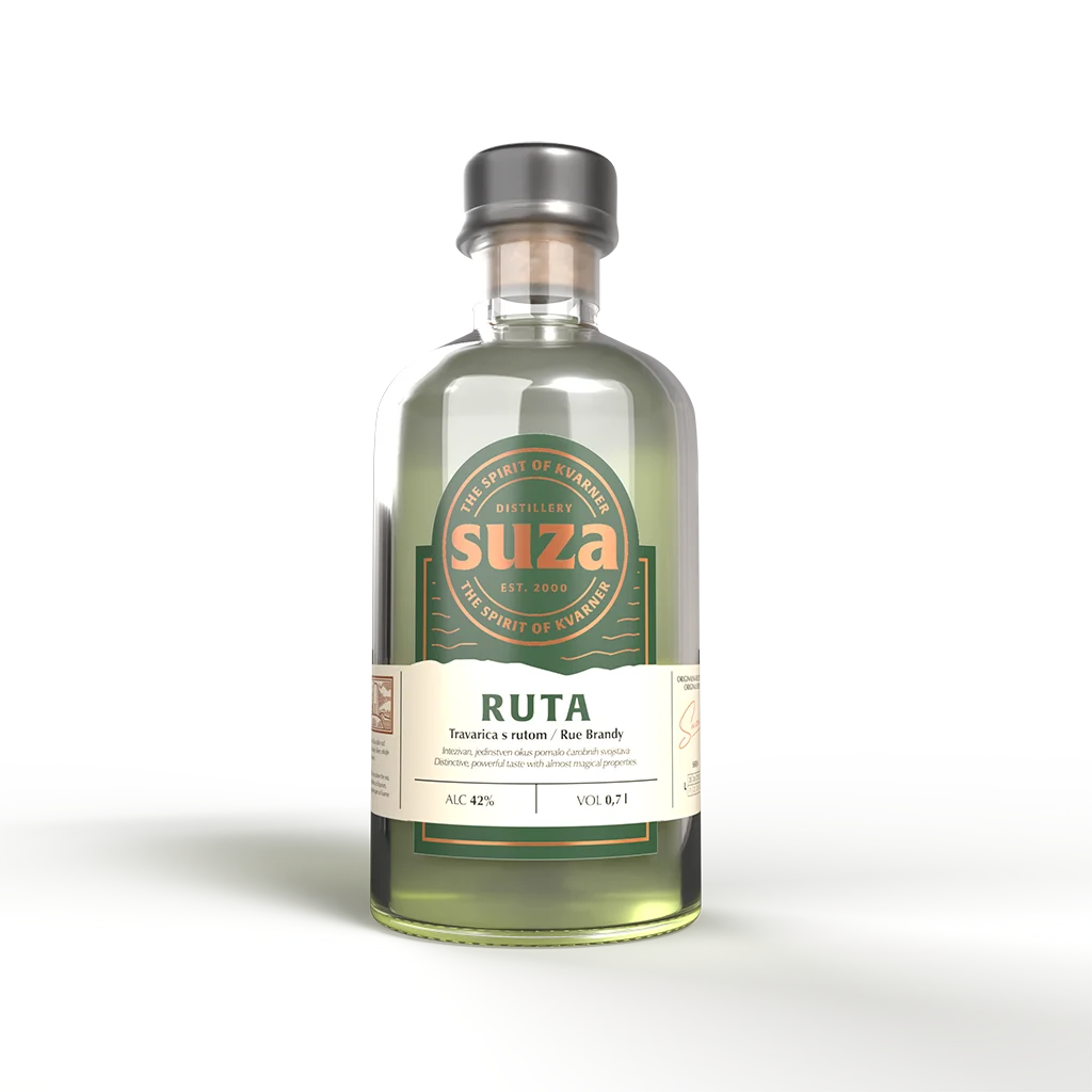 Suza Ruta 0,7L je travarica s dodatkom rute, biljke snažnog i prepoznatljivog karaktera. Intenzivne arome i izražene herbalne note čine je autentičnim predstavnikom kvarnerskih destilata. Proizvedena tradicionalnim postupkom, Ruta je snažna, aromatična i dugog završetka.